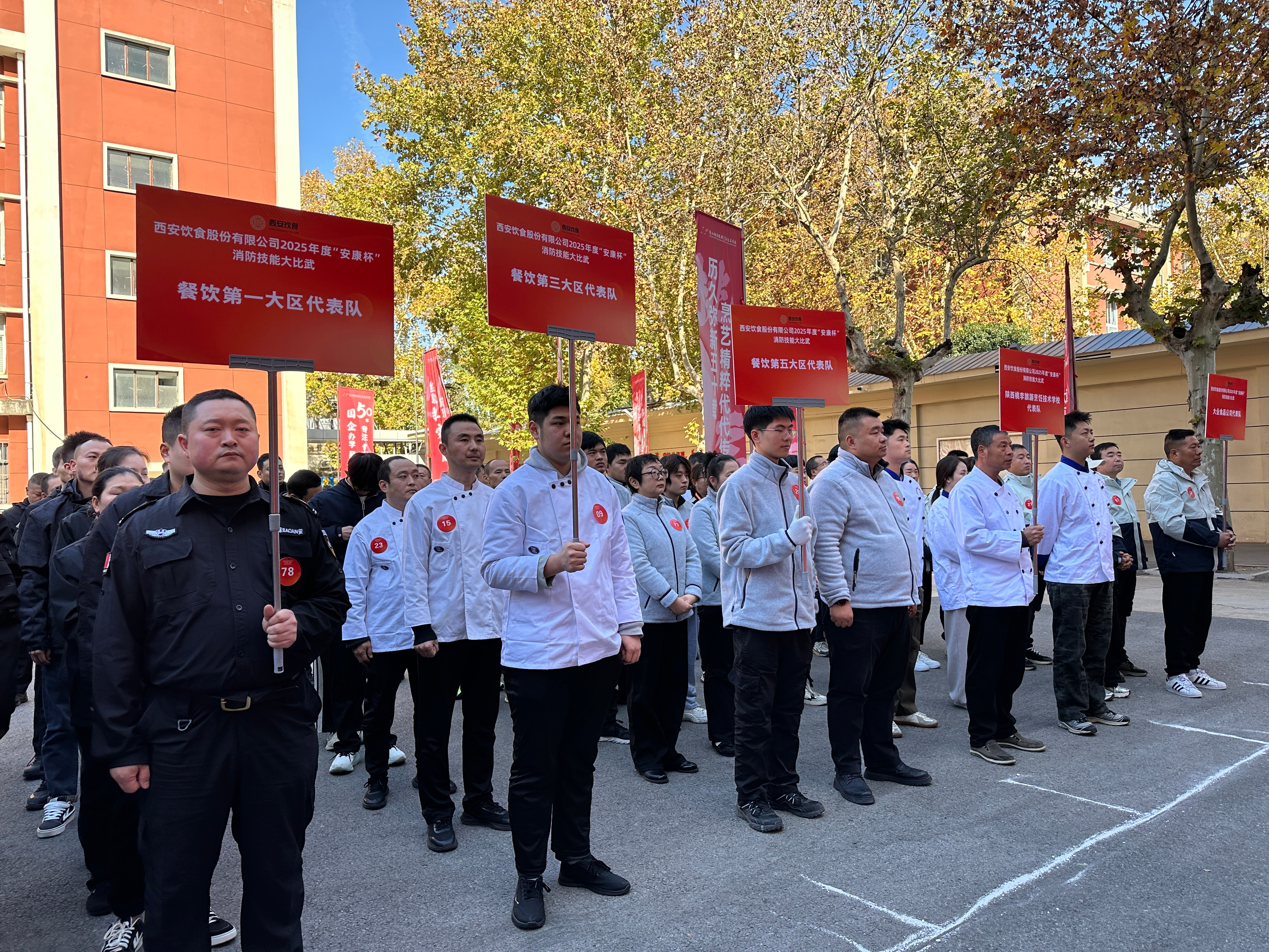 11月19日,西安飲食股份有限公司2025年“安康杯”消防技能大比武在陜西桃李旅游烹飪學(xué)校圓滿舉行。此次以“筑牢安全防線,錘煉消防硬功”為主題的比拼,旨在強(qiáng)化全員安全意識(shí)與應(yīng)急能力,既是實(shí)操能力的集中檢閱,更是公司“守護(hù)民生福祉”理念的生動(dòng)實(shí)踐。公司黨委書記、董事長(zhǎng)劉勇,總經(jīng)理馮凱等領(lǐng)導(dǎo)及各單位負(fù)責(zé)人、一線員工共130余人齊聚現(xiàn)場(chǎng),見(jiàn)證賽場(chǎng)激烈角逐。