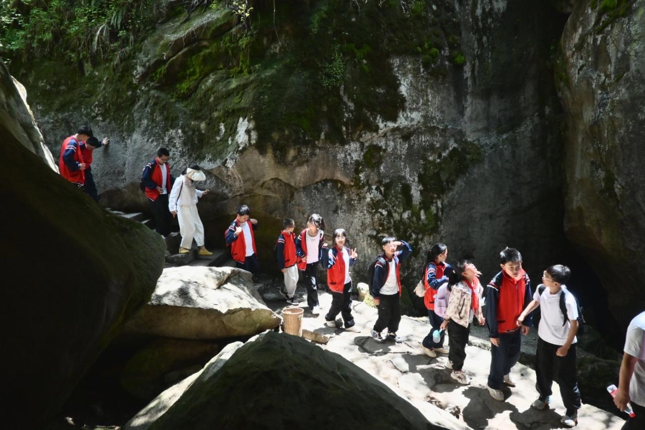 隨后,活動移步戶外。在天池泛舟的悠然與冰洞、風洞地質(zhì)奇觀的震撼中,志愿者們引導孩子們近距離觀察壯麗的山崩地貌,并結(jié)合實景進行沉浸式講解,有效拓寬了孩子們的視野,增長了他們的見識。精心設(shè)計的團隊協(xié)作游戲和分組互動環(huán)節(jié),則進一步激發(fā)了孩子們的合作意識與溝通能力?;顒蝇F(xiàn)場,翠華山景區(qū)還為每一位孩子送上了精心準備的兒童節(jié)禮物,歡聲笑語在山谷間回蕩。
